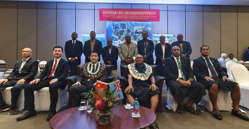 2026年4月9日,驻斐济使馆临时代办汪元出席斐济总理府举办的中国援斐瓦努阿岛(北岛)道路升级项目初步设计外审通过仪式,斐济总理兰布卡、内阁部长等政府高官出席。